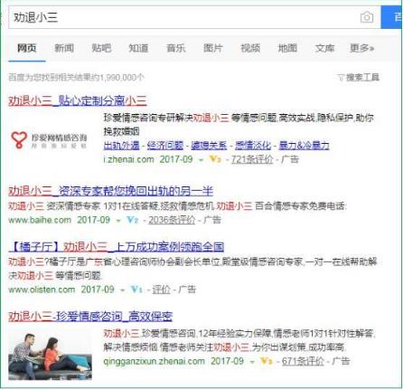 也正是如此暴利,所以我們可以在百度搜索看到,有大量的人在做付費(fèi)廣告,競爭這塊新的情感咨詢新領(lǐng)域。